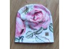 Barevná oboustranná čepice s velkými květy růže a s růžovou spodní stranou. Jednoduše otočíte a máte úplně jinou čepici.
