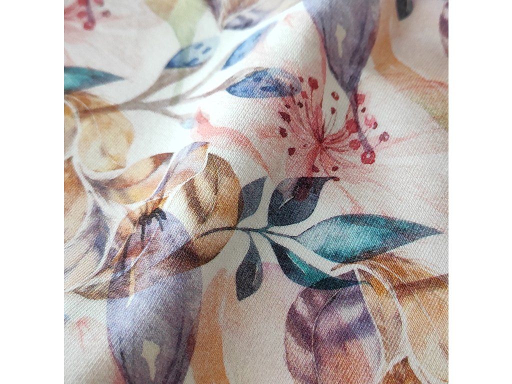 Barevné květy ve světlých odstínech v kombinaci s růžovými nebo zelenkavými manžetami. Vzor může být lehce posunutý oproti tomu, co vidíte tady na eshopu. Případné odchylky v barevnosti jsou dány nastavením Vašeho monitoru.